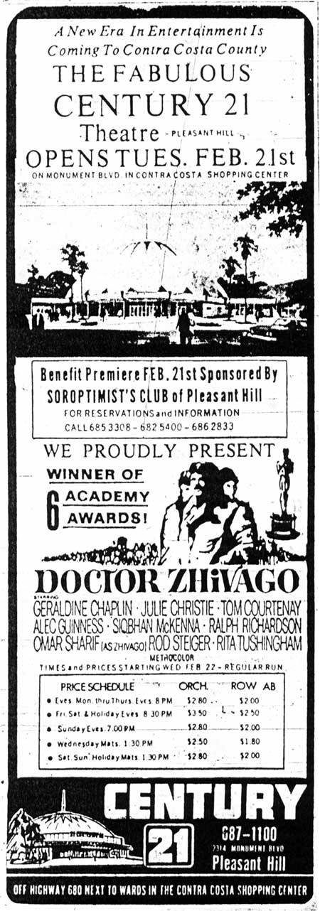 Newspaper Ad For Grand Opening of Majestic Centuary 21 Movie Tuesday February 21st, 1967.